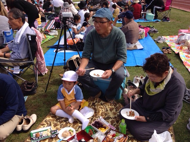 みんなで 弁当食べて〜。